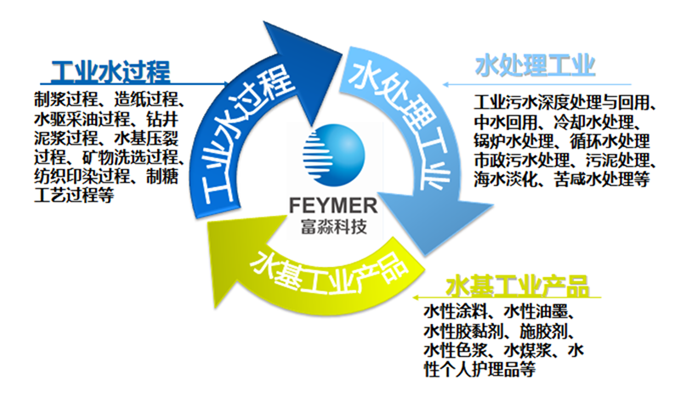 在核心技术主线上,公司定位于亲水性功能高分子的开发与应用,深度服务水基工业领域,提供一流性价比的产品、服务,致力于成为客户的首选合作伙伴。面向工业和市政水处理,以及水生态治理市场领域,公司为下游客户提供水处理化学品、水处理膜产品、水处理工程与运营服务等,满足客户达标排放、超低排放、降低成本、提升可靠性、废水资源化等各种需求,实现水生态资源的可靠保护。面向大量以水作为载体的工业加工过程,公司提供以水溶性高分子为基础的工业水过程化学品及技术服务,提升客户生产效率,降低生产过程中的能耗和物耗,降低污染排放,改善产品品质,并助力资源循环利用,实现绿色可持续发展。